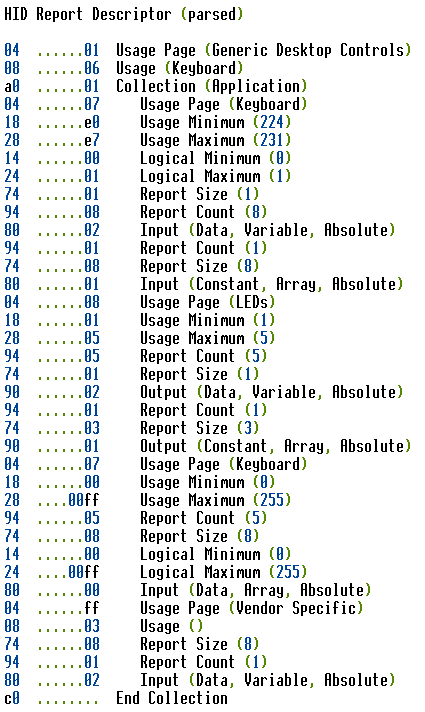 device is a HID (Human Interface Device), a so-called HID Report Descriptor